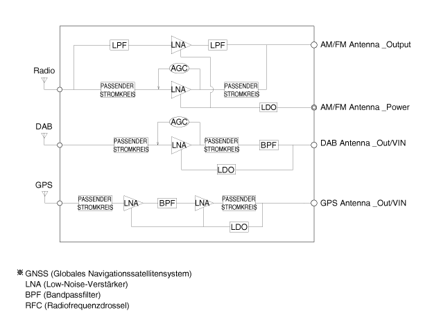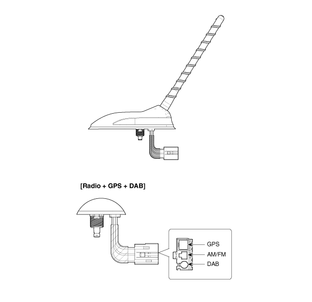 | [Антенна на крыше (радио + GPS + DAB)] |