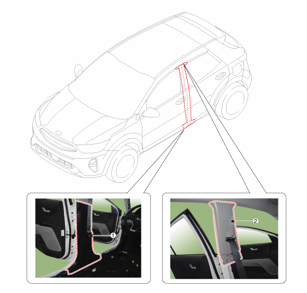 Снимите нижнюю облицовку средней стойки (А) с помощью съемника.
