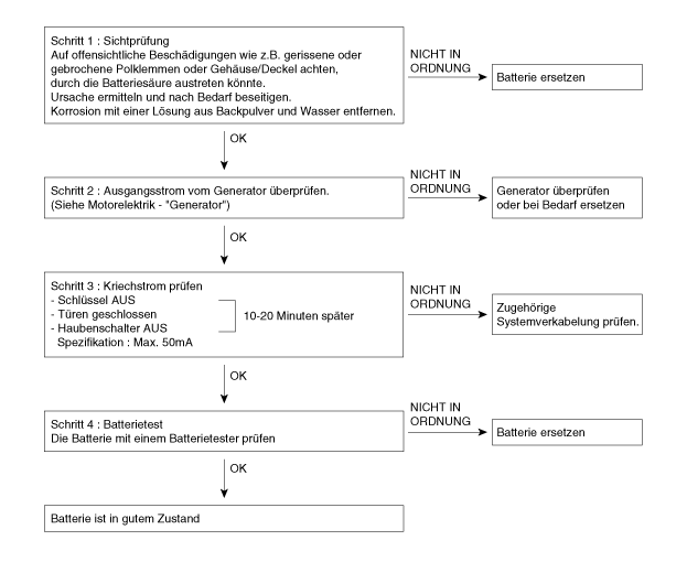 Проверьте лоток аккумуляторной батареи на наличие повреждений, вызванных потерей электролита.