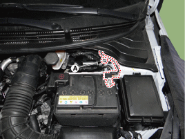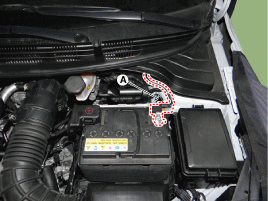 Отсоедините отрицательную (-) клемму аккумуляторной батареи (А).