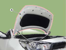 Ослабьте крепежные винты петли капота (B), а затем (А) удалить.