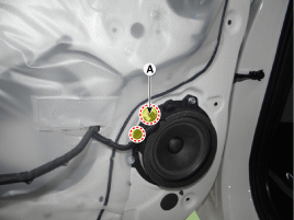 Отсоедините разъем динамика передней двери (А), затем фиксирующие зажимы. снять проводку.