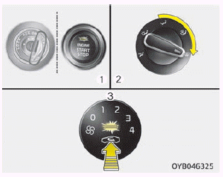 1. Поверните ключ зажигания в Положение замка зажигания ВКЛ.