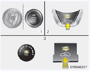 Индикатор кондиционера мигает 3 раза. это показывает указывает, что логика предотвращения запотевания прервана будет или вернется в запрограммированное статус возвращается. Если батарея разряжена или отключена было, система включена сбросить программу защиты от запотевания.