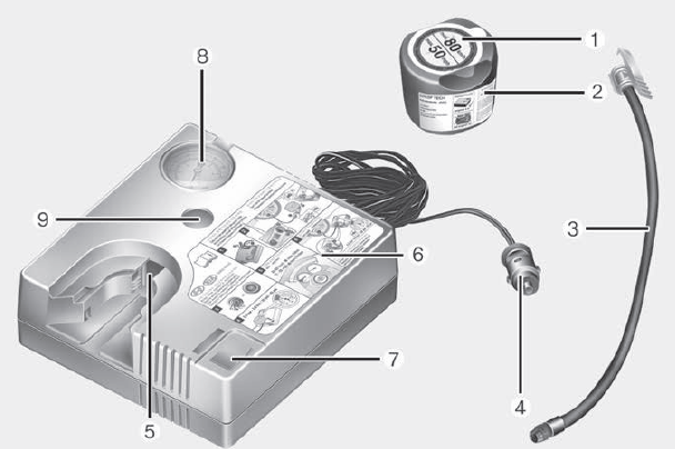 Перед использованием подвижности шин Наборы следуют инструкциям на Следите за бутылкой с герметиком. Потяните наклейку с помощью индикация ограничения скорости из баллона с герметиком и прикрепите его к рулю. Обратите внимание на срок годности флакон с герметиком.