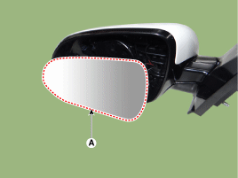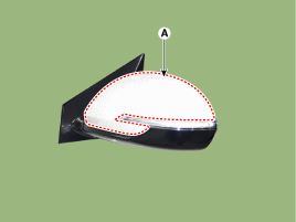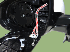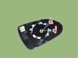 Отсоедините монтажные зажимы (А) и снимите кожух наружного зеркала (А).