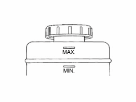 Проверьте уровень тормозной жидкости в расширительном бачке. Уровень жидкости должно быть между отметками «MIN» и «MAX» на боковой стороне расширительного бачка класть.