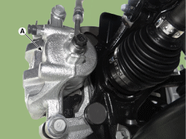 Ослабьте винт прокачки заднего правого тормоза (А), чтобы выпустить воздух. уйти от системы. Затем затяните прокачной винт. ПЕРЕДНИЙ