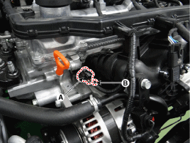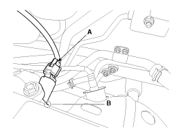 Отсоедините разъем OVVT (А) масляного клапана управления. |