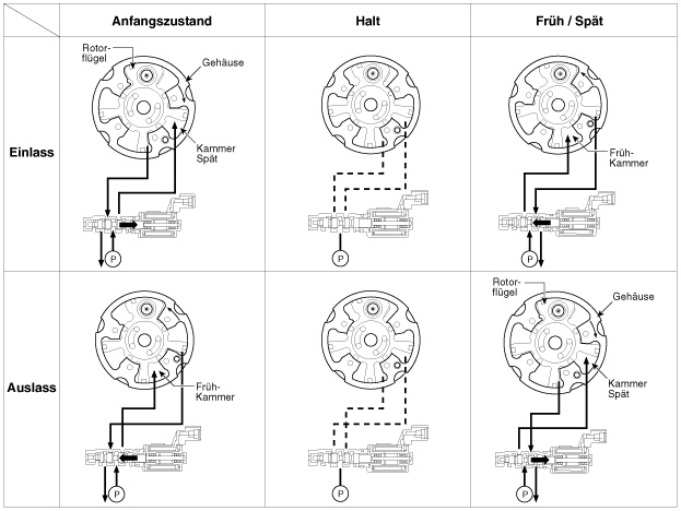 и фазовращатель кулачка, который регулирует фазу кулачка в соответствии с фазой, создаваемой моторным маслом. Гидравлическая мощность варьируется. |