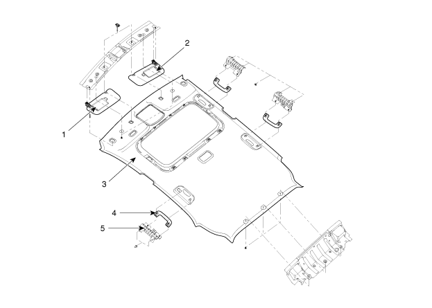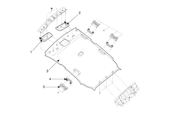 2. Солнцезащитный козырек [правый] 3. Отделка крыши в сборе [люк] |