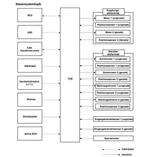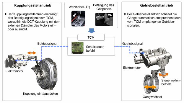Управление коробкой передач с двойным сцеплением (DCT) измеряет необходимые данные, для определения состояния цели управления и расчета соответствующих значений компенсации, когда требуется регулировка.