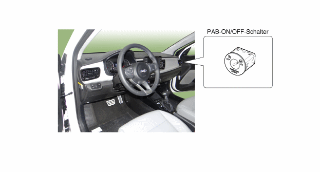 Выключатель подушки безопасности пассажира (PAB) расположен на боковой панели автомобиля. установлена приборная панель.