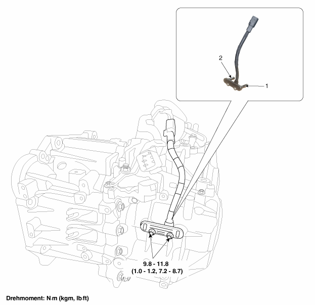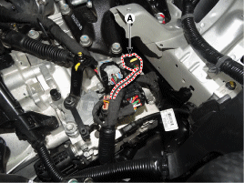 Отсоедините разъем (А) от датчика частоты вращения входного вала.