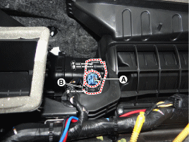 Отсоедините разъем (А), а затем привод подачи свежего/рециркуляционного воздуха. (B) после ослабления крепежных болтов.