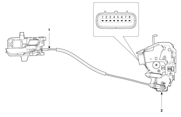 Функция привода путем подключения питания и заземления, как проверьте, как показано ниже. Чтобы не повредить привод, подавать напряжение батареи только на короткое время. [Электродвигатель центрального замка]