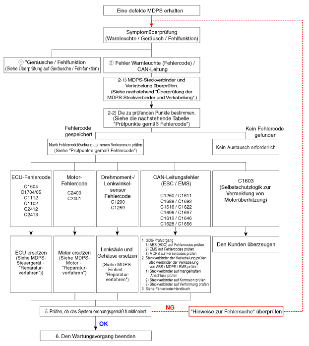 Это приводит к более точному и своевременному управлению усилителем рулевого управления. чем гидравлические системы с механическим приводом. Компоненты (датчик угла поворота рулевого колеса, датчик крутящего момента, аварийные реле и др.) системы МДПС расположены в рулевой колонке. блок МДПС, Рулевая колонка и блок MDPS не должны быть разобраны для осмотра. Она должны быть заменены в случае необходимости.