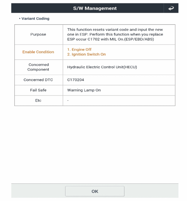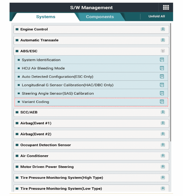 Выберите «Модель автомобиля» и «ABS/ESC» на экране выбора KDS, затем нажмите «ОК». нажимать.