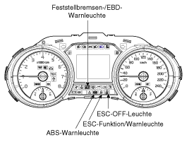 После включения зажигания ЭБУ непрерывно диагностирует неисправность системы (самодиагностика). При обнаружении неисправности системы ЭБУ информирует водителя через контрольную лампу BRAKE/ABS/ESC из-за неисправности системы (предупреждение о безопасности).