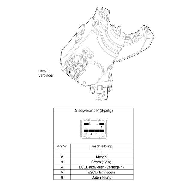 Отсоедините разъем электронного замка рулевой колонки (А).
