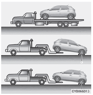 Если требуется буксировка в экстренной ситуации это рекомендуется у официального дилера Киа или сделать коммерческий эвакуатор разрешить. Во избежание повреждения автомобиля избегать, должны соответствовать и применены профессиональные процедуры буксировки становиться. Рекомендуется Прицеп (1) или пикап использовать.
