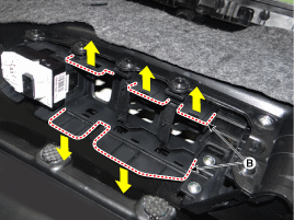 Переключатель электрического стеклоподъемника (A), потянув за оба конца держателей переключателя. (В) удалить.