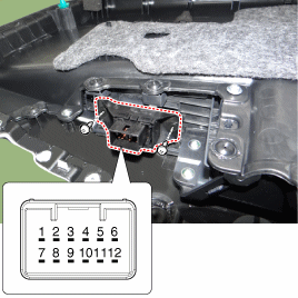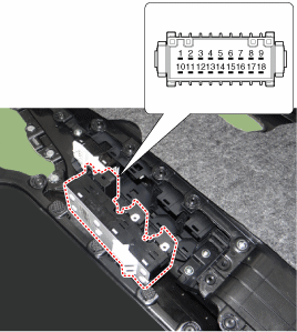 Отсоедините разъем переключателя стеклоподъемника от дверной панели. [переключатель окна со стороны пассажира]