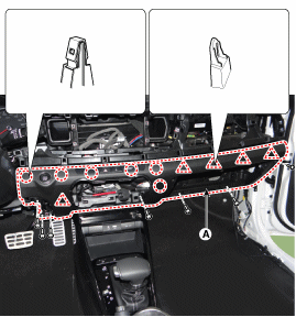 Снимите переднюю панель со стороны водителя и воздуховод (А).