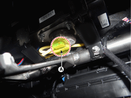 Отсоедините разъем (А) и шланг (В), затем блок управления отопителем. удаленный.