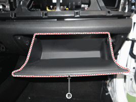 Снимите шарнирные штифты (А), затем снимите перчаточный ящик (В).