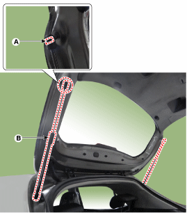Снимите гнездо (A) с помощью отвертки, а затем Демонтируйте подъемник задней двери (В).