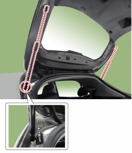 Будьте особенно осторожны, так как задняя дверь может упасть когда газовые пружины были удалены. Попросите помощника открыть заднюю дверь оставить или поддержать подходящими методами. |