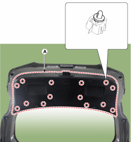 Снимите панель обшивки задней двери (А) с помощью съемника.