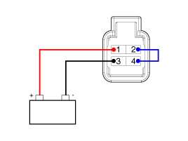 Подключите напряжение аккумуляторной батареи (+) к клемме 1, а массу аккумуляторной батареи (-) к клемме 3. |