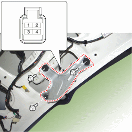 Откройте заднюю дверь и снимите обшивку задней двери. (См. Кузов — «Отделка задней двери») |