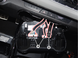 Блок управления отопителем и кондиционером (А) после ослабления крепления узла удаленный.