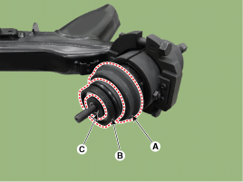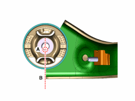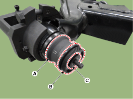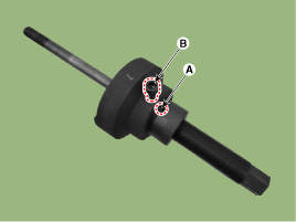 Установите новую втулку, совместив канавку втулки (А) и нижнюю Участки (B) оси торсиона выровнены друг с другом.