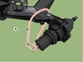 Присоедините страховочный трос (А), один раз обернув его вокруг оси торсиона.