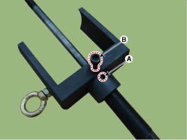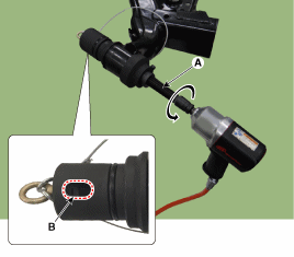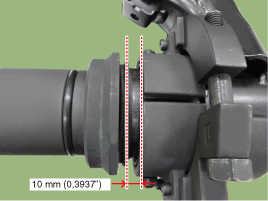 Поворачивая главный винт (А) по часовой стрелке с помощью пневматического гайковерта монтировать так, чтобы между втулкой и торцевой кромкой был зазор 10 мм руководство по розетке существует. Во время этой операции визуально проверяйте через отверстие в крышке (B). разводится ли мать. Если гайка ослабнет, используйте указанную затяните крутящий момент.