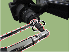 Ослабьте нижний болт амортизатора.