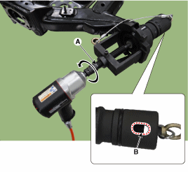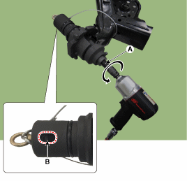 втулку, повернув главный винт (А) против часовой стрелки. снять ударным гайковертом. Во время этой операции визуально проверяйте через отверстие в крышке (B). разводится ли мать. Если гайка ослабнет, используйте указанную затяните крутящий момент.