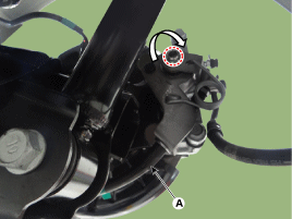 Ослабьте винт (А) на заднем тормозном диске, затем задний тормозной диск худеть.