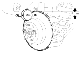 Если биение не превышает предела, отрегулируйте тормозной диск после поворота на 180° и снова проверьте биение. |