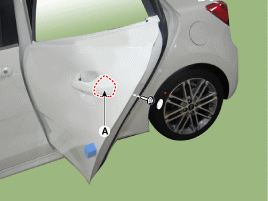 Сдвиньте внешнюю ручку задней двери (А) назад и снимите ее.