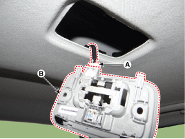 Отсоедините разъем (A) лампы салона (B) и лампы салона. Удалять.