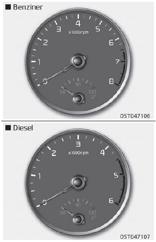 Не запускайте двигатель во время тахометр горит красным находится район. Это тоже может привести к серьезному повреждению двигателя.