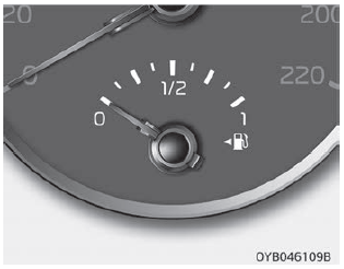 Пассажиры автомобиля могут находиться в опасной рекомендуемые ситуации, когда бак работает пустой. Обязательно остановитесь и заправьте Проверьте, как только загорится сигнальная лампа уровня топлива. загорается или Указатель уровня топлива отметка "0" (пусто) приближается.