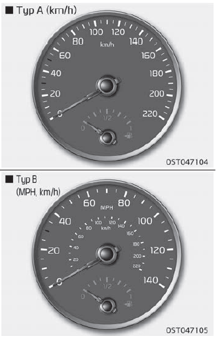 Спидометр показывает скорость автомобиля и выражается в милях/ час (миль/час) или в километрах/час (км/ч) откалибровано.