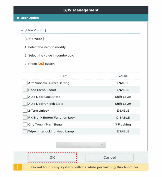 С помощью «Опции пользователя» можно изменить опцию пользователя.