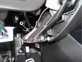 Отвинтите винт и воздуховод вентиляции пространства для ног (А) со стороны водителя. срывать.